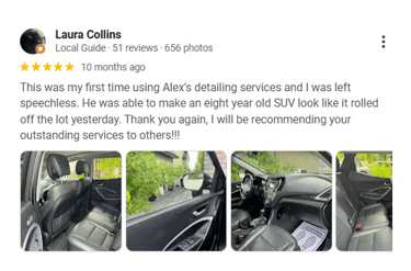 A detail usually takes 2-3 hours depending on the package and condition of the vehicle.